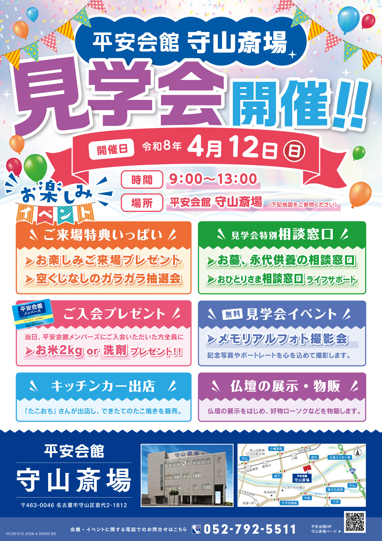 名古屋市守山区の「平安会館 守山斎場」にて、どなたでもお越しいただける見学会を開催いたします!